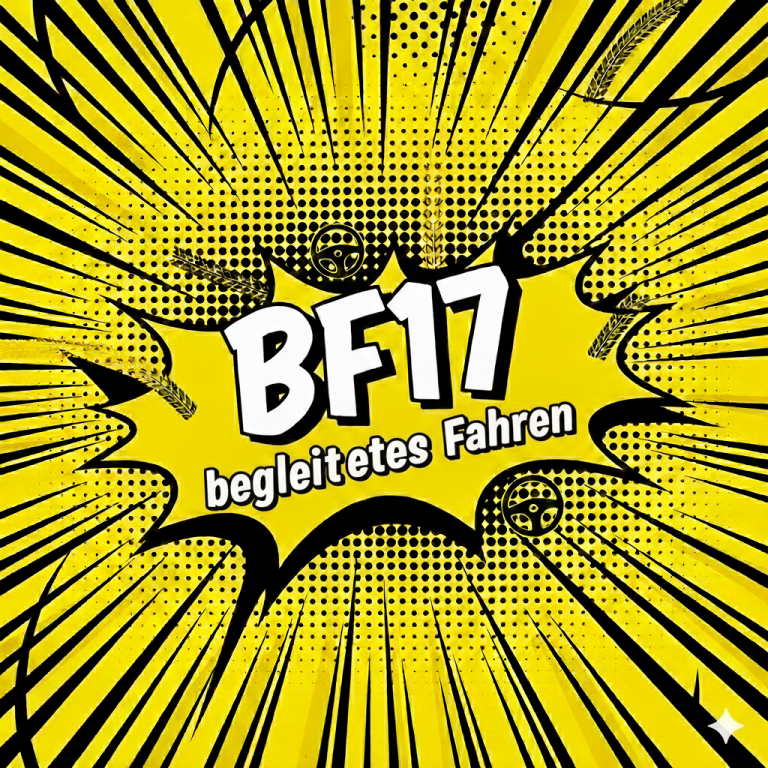 Früh übt sich! Beim Begleiteten Fahren ab 17 (BF17) kannst du deine Ausbildung in der 7 Tage Fahrschule bereits mit 16 ½ Jahren beginnen. Nach bestandener Prüfung darfst du bis zu deinem 18. Geburtstag zusammen mit einer Begleitperson am Steuer sitzen.